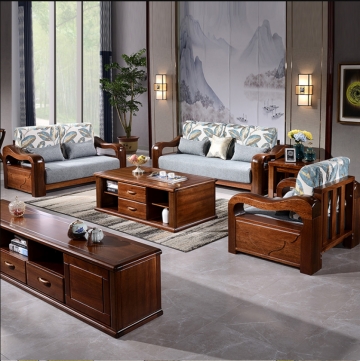 選新純實(shí)木新中式沙發(fā) 1+2+3+茶幾 25【惠家家居】