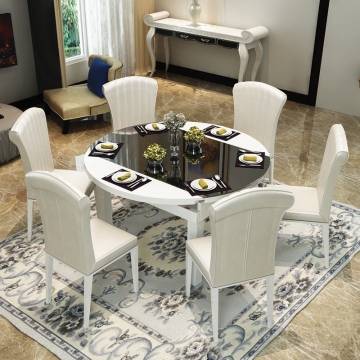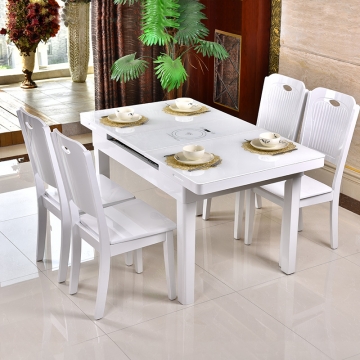 純白色伸縮餐桌一桌四椅實(shí)木椅子帶電磁爐